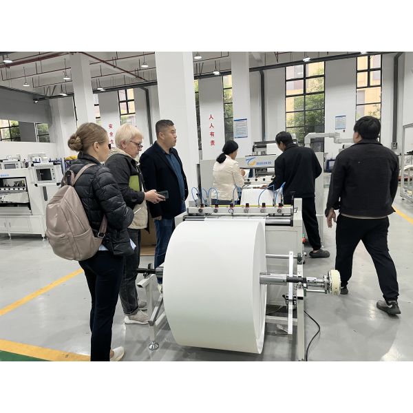 High Efficient Automatic Foam hot melt adhesive Intermittent Gluing and Wave Receiving Production Line Images |